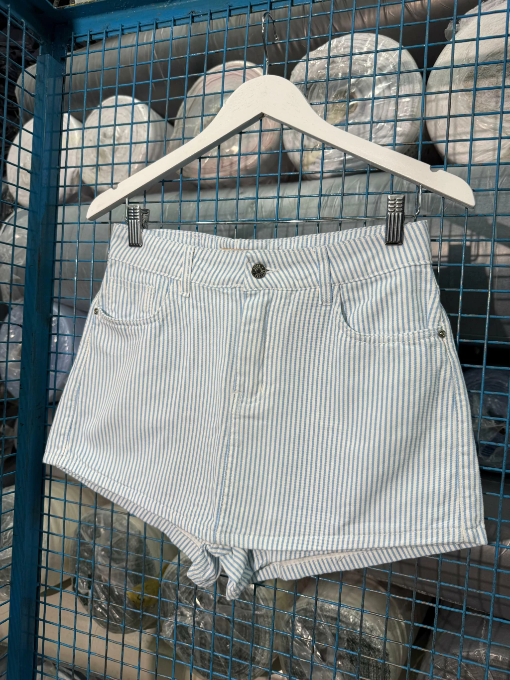 El Short Pollera Nicki es la prenda ideal para un look fresco y moderno. Con un diseño de jeans rayados, rígidos y tiro alto, ofrece una silueta favorecedora y un estilo único.
